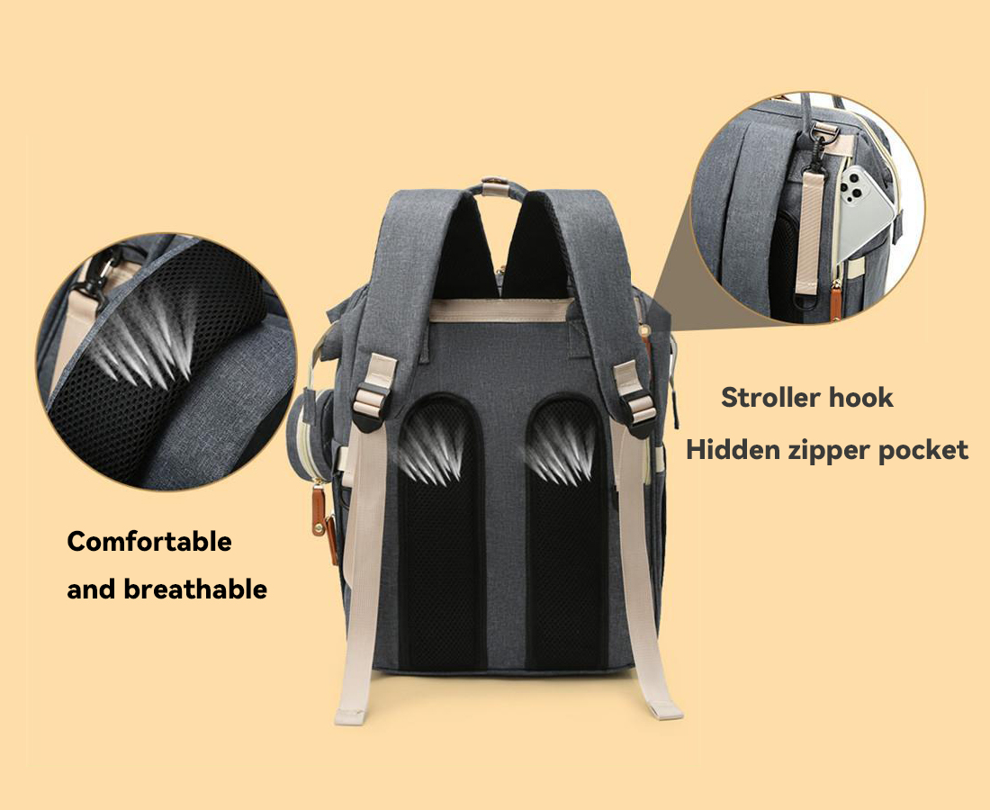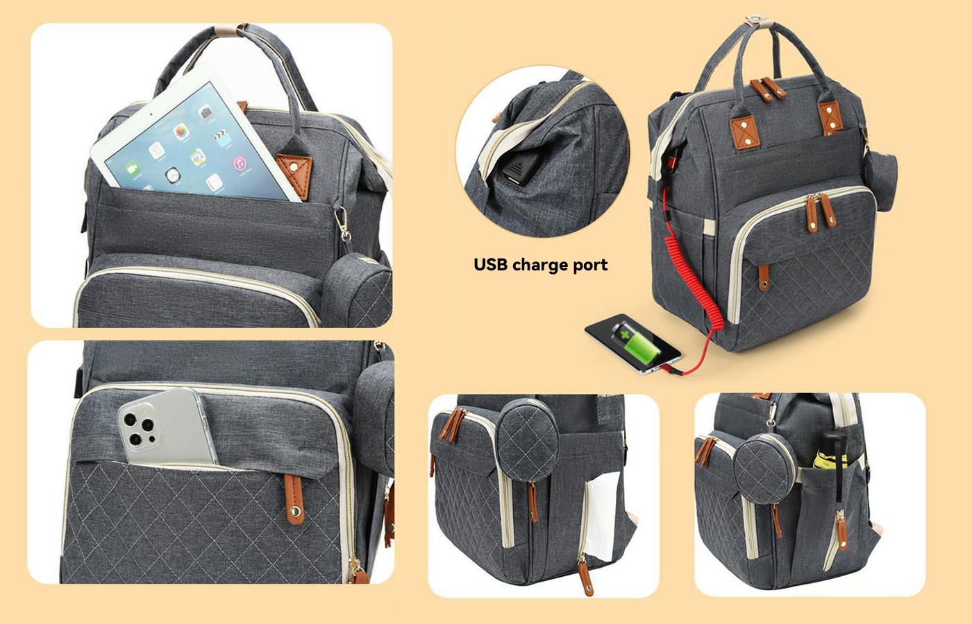 - Comfortable & Travel Friendly - Built-in USB charging port offers recharge for phone on the go. Designed with mesh breathable and thickened shoulder straps, ultimate comfort for carrying for all the seasons.This travel diaper back pack is with compact structure yet plenty of capacity space, allowing easy storage for most needed baby essentials, ideal for a short weekend trip or hitting the beach or camping for the day.