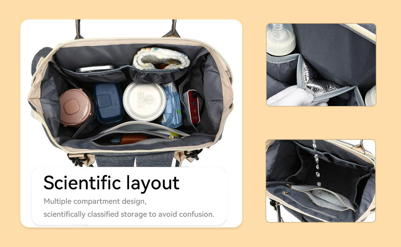 - Large Capacity & Thermal Insulation - Featuring 14 usage pockets, each pocket of the diaper bag is independent for organizing the baby stuff and fetching out what you need in a clean and orderly manner. One anti-theft pocket in back is designed for phones, keys and cards. 3 insulated pockets fit for all major baby bottles and keep the bottles warms while the 2 elastic side pockets hold wipes,tissues, 1dry/wet pocket for wet towel/clothes/diapers etc.